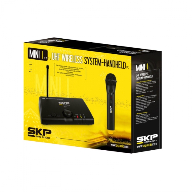 Microfone sem fio SKP ideal para uso em palestras, igrejas, apresentações ao vivo entre outros eventos de pequeno porte. Opera com sinal UHF garantindo que não ocorra nenhum tipo de interferência de sinal. Com 16 canais programados fica muito fácil utilizar e instalar.